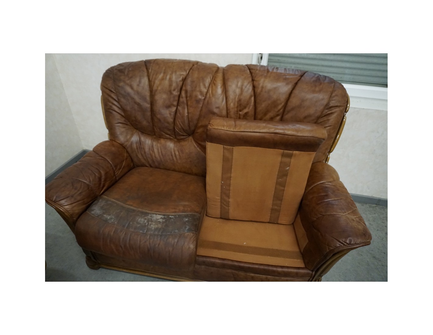 Głównie poduchy nadają sie do renowacji skóry. Poduchy są wyciągane. Cała konstrukcji jest w dobrym stanie