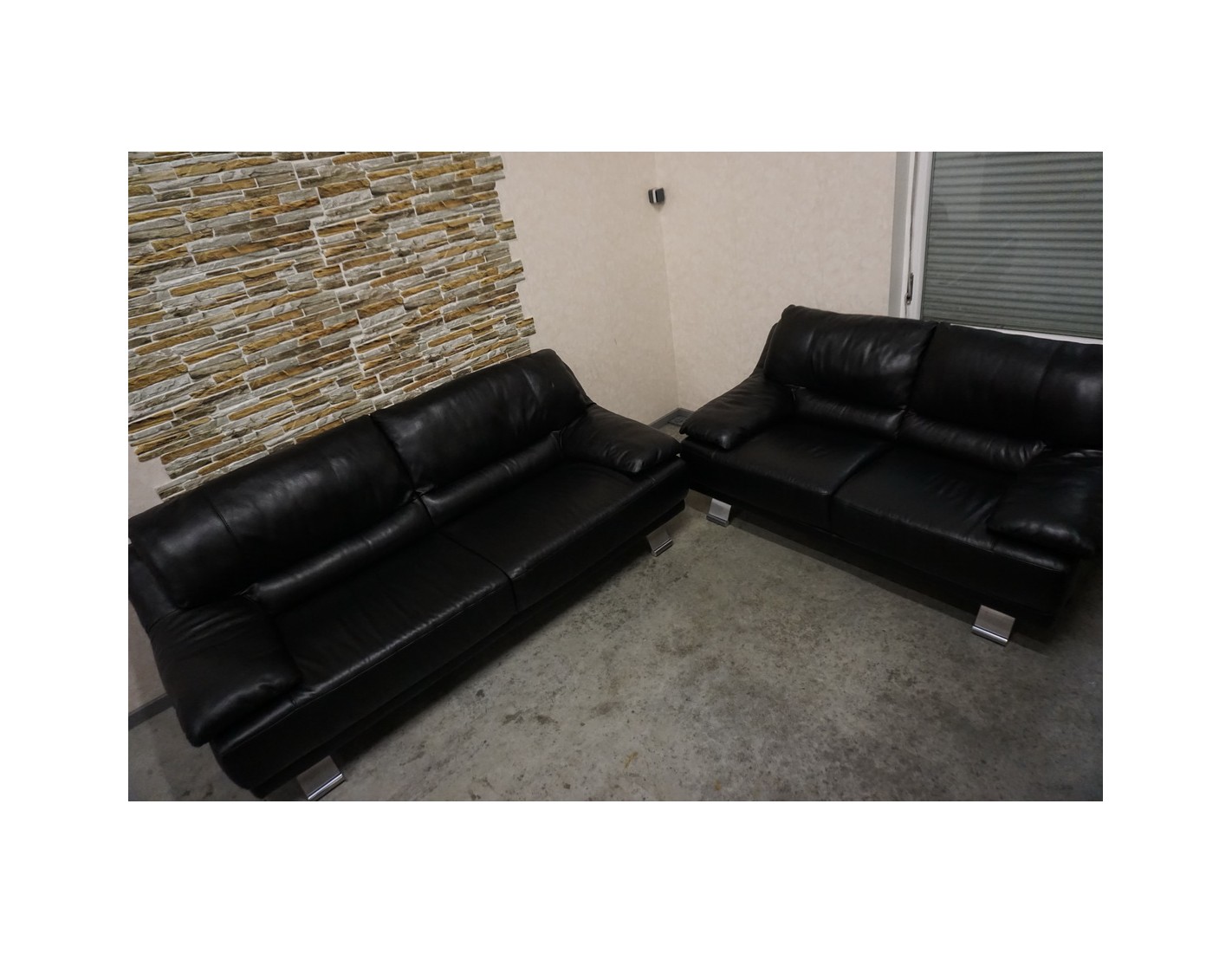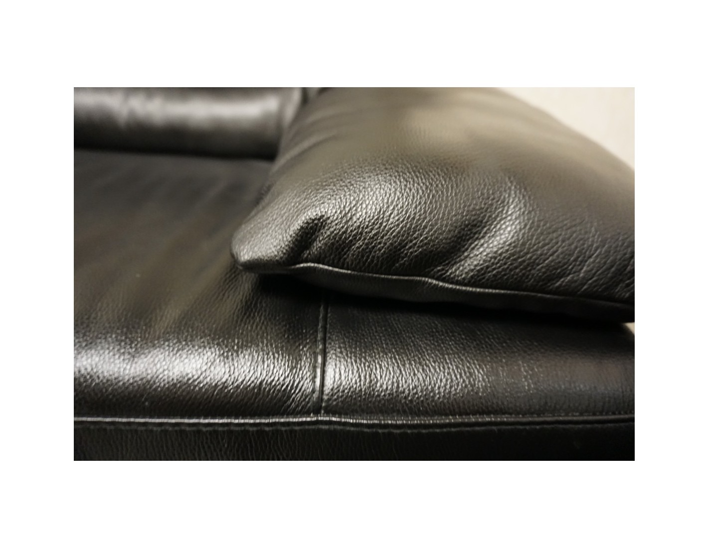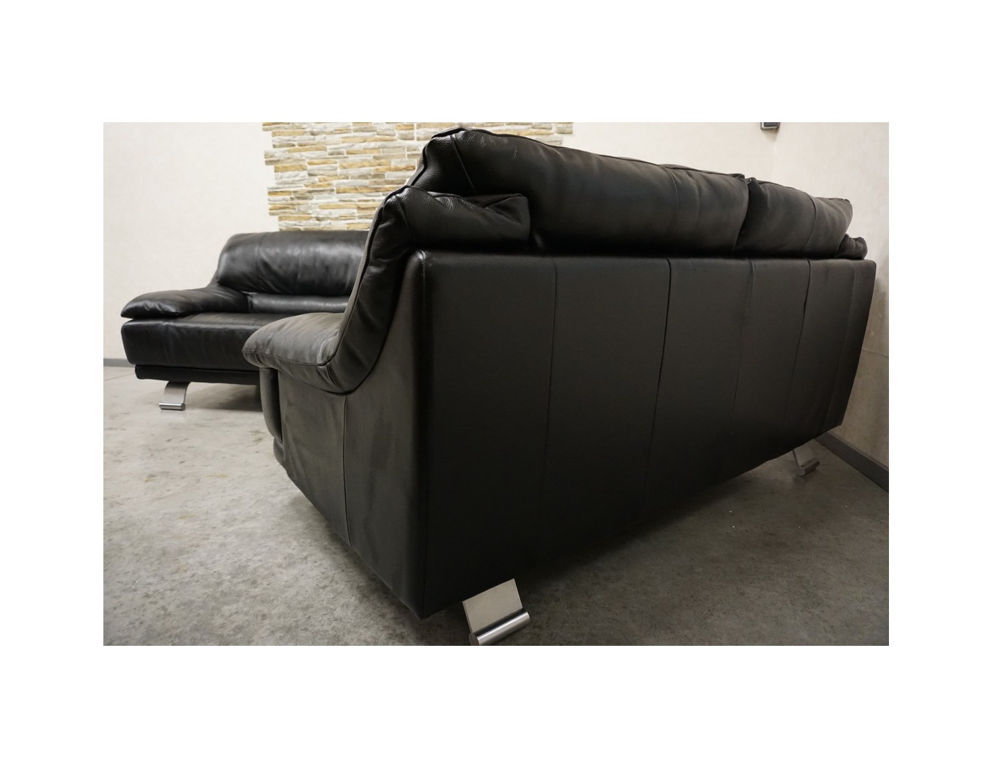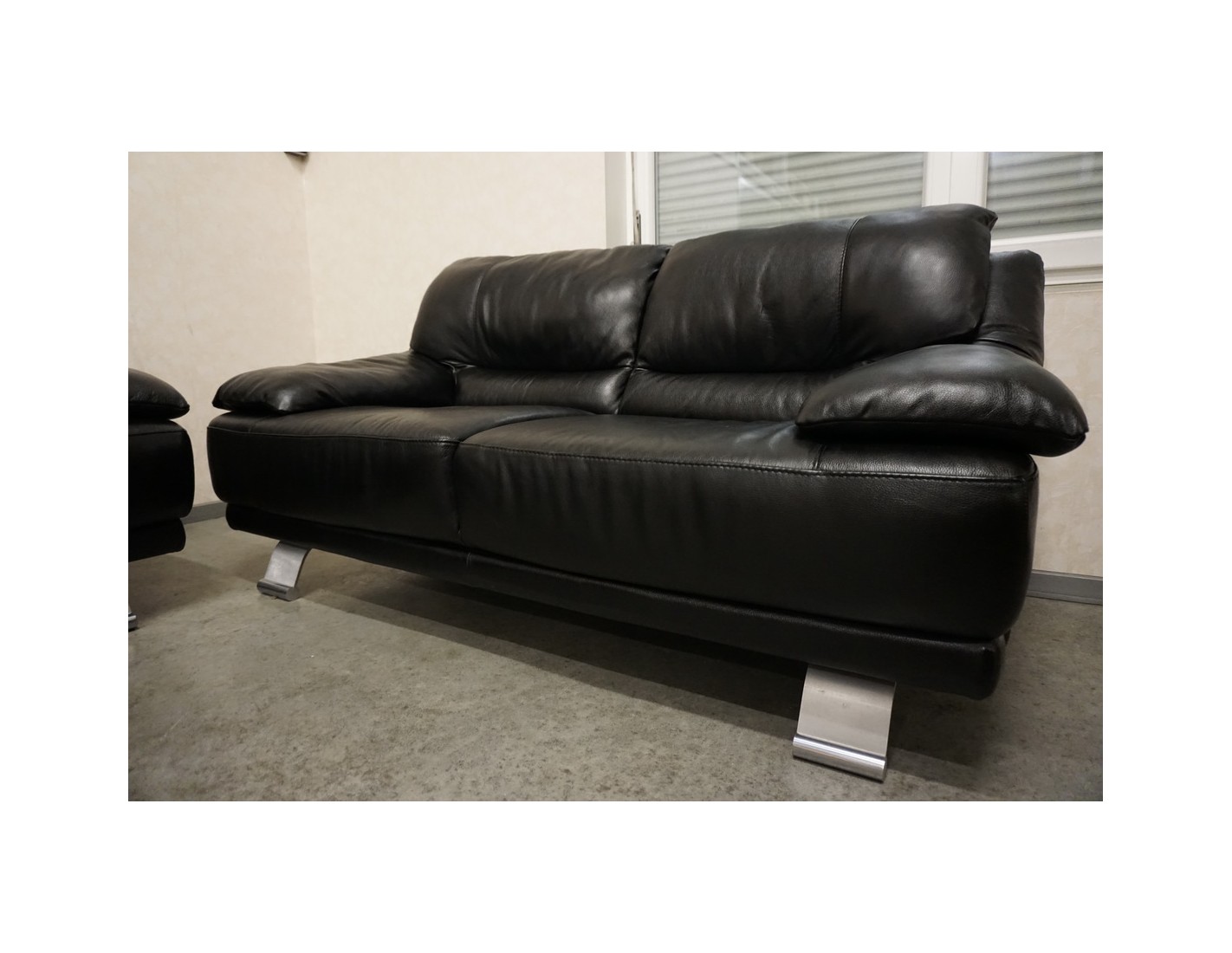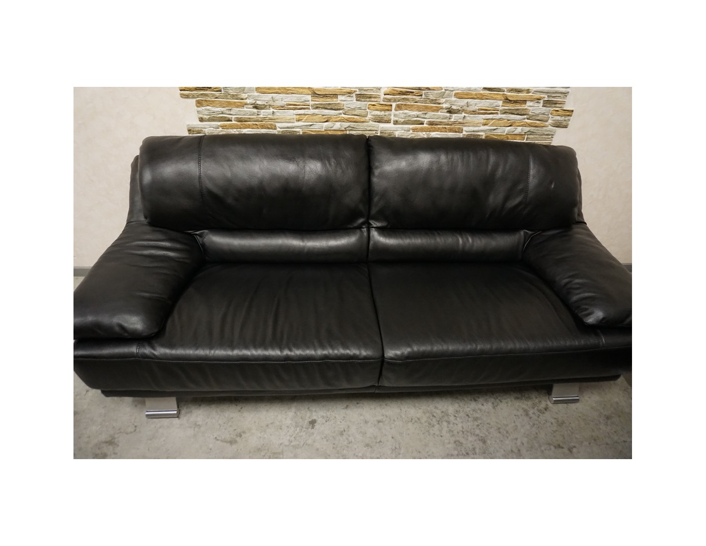 Elegancki zestaw wypoczynkowy wykonany ze skóry naturalnej w kolorze czarnym w układzie 3+2. Klasyczna forma oraz ponadczasowa kolorystyka sprawiają, że komplet doskonale pasuje zarówno do nowoczesnych, jak i bardziej tradycyjnych wnętrz.
