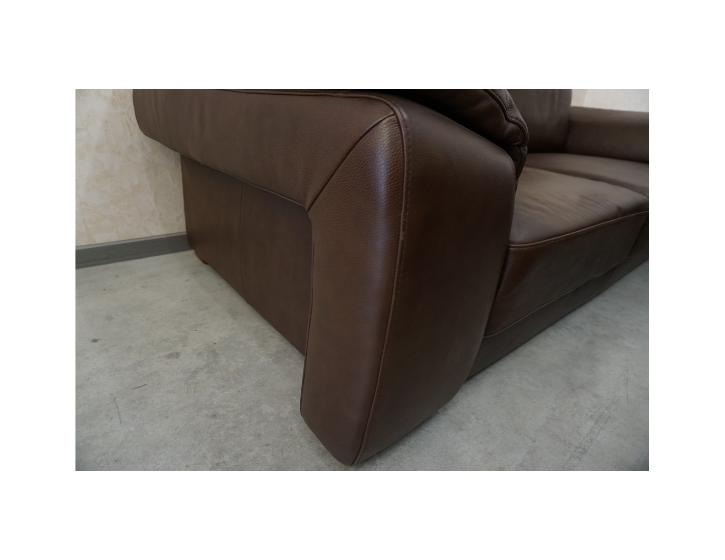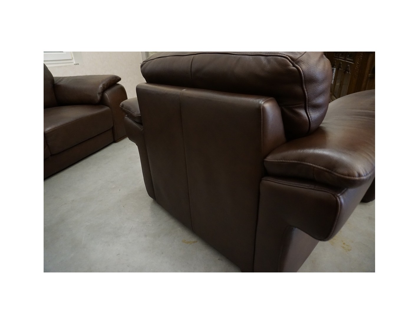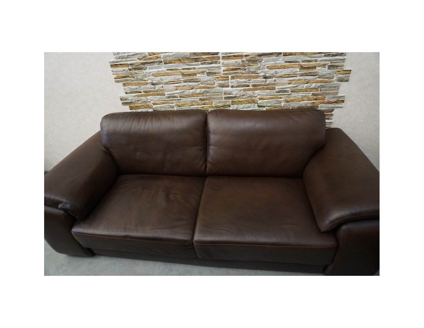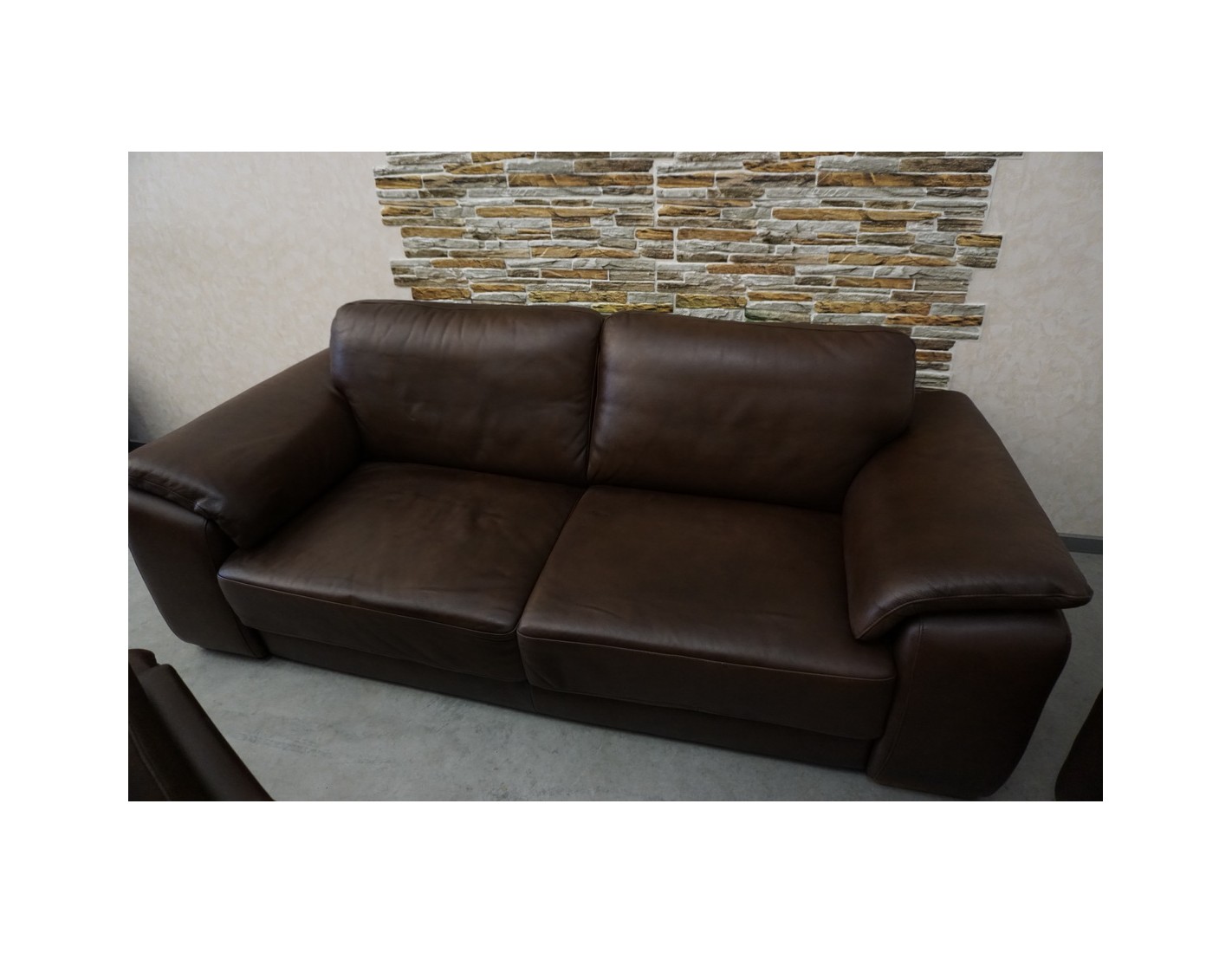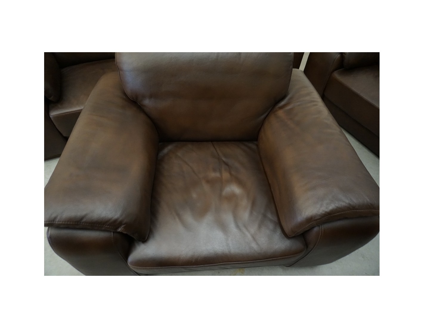 Elegancki zestaw wypoczynkowy wykonany ze skóry naturalnej w brązowym, cieniowanym wybarwieniu. Komplet w układzie 3+2+1 składa się z sofy trzyosobowej, sofy dwuosobowej oraz wygodnego fotela, tworząc komfortową przestrzeń do wypoczynku w salonie.