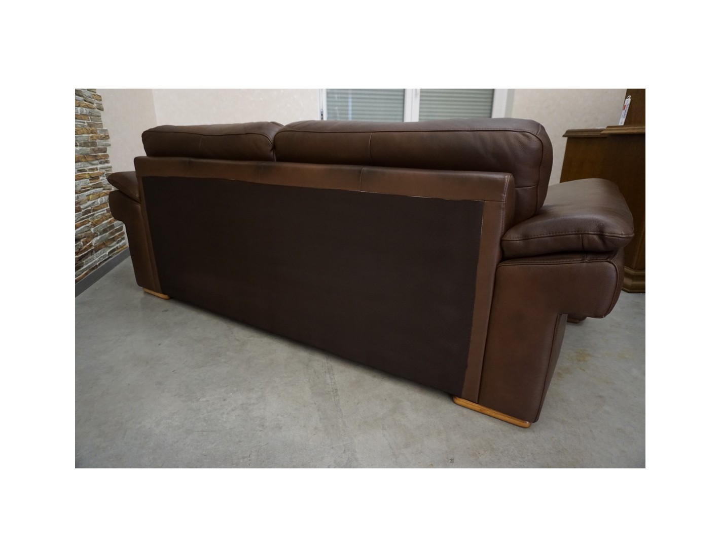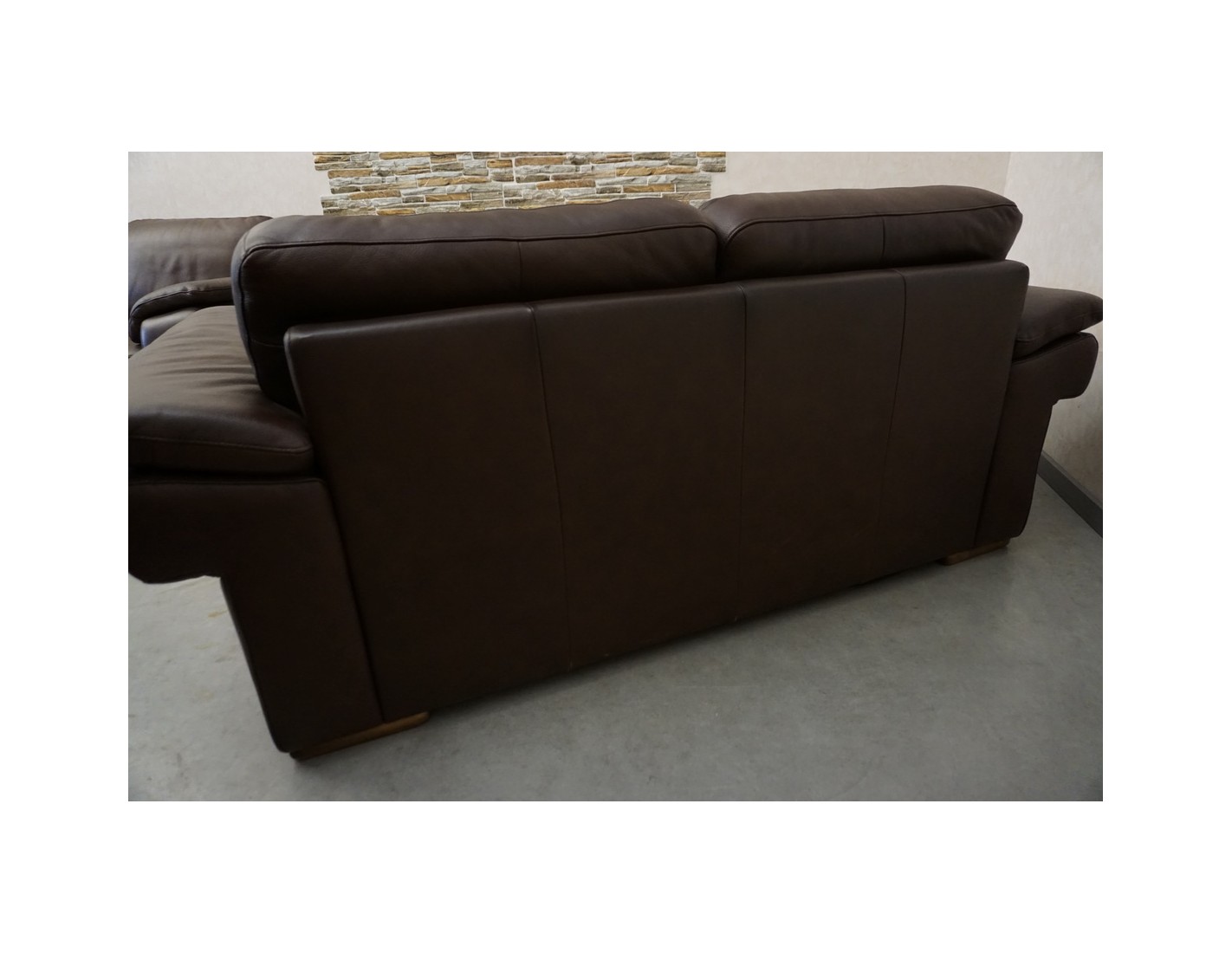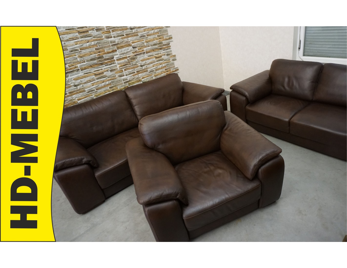 ZESTAW WYPOCZYNKOWY SKÓRA NATURALNA BRĄZOWA CIENIOWANA 3+2+1