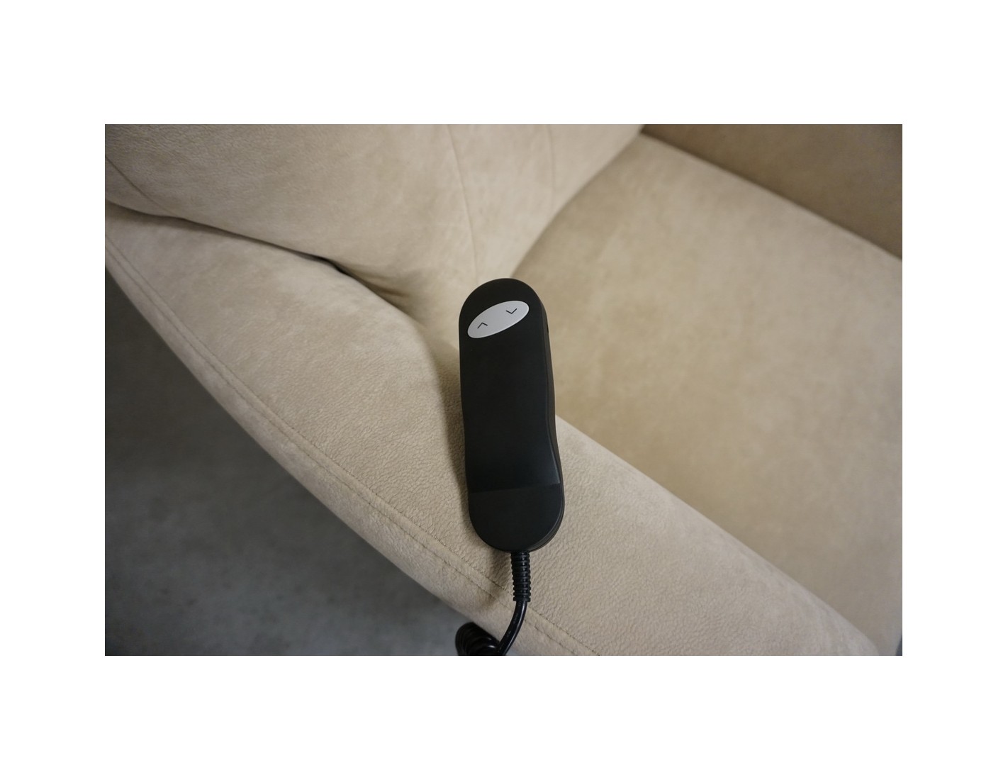 FOTEL ELEKTRYCZNY Z FUNKCJĄ POMOCY WSTAWANIA O SZEROKOŚCI 80 CM, GŁĘBOKOŚCI 80 CM I WYSOKOŚCI SIEDZISKA 44 CM TO WYGODNY I FUNKCJONALNY FOTEL. POSIADA KÓŁKA UŁATWIAJĄCE PRZEMIESZCZANIE PO POMIESZCZENIU. JASNY KOLOR DODAJE MU ELEGANCJI, CO SPRAWIA, ŻE STANOWI STYLOWY ELEMENT WYPOSAŻENIA.