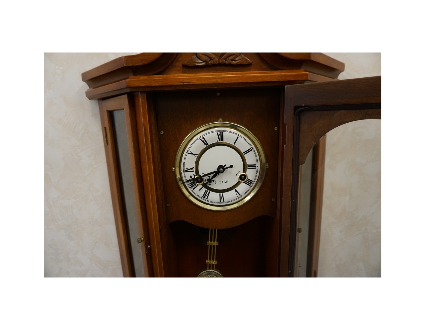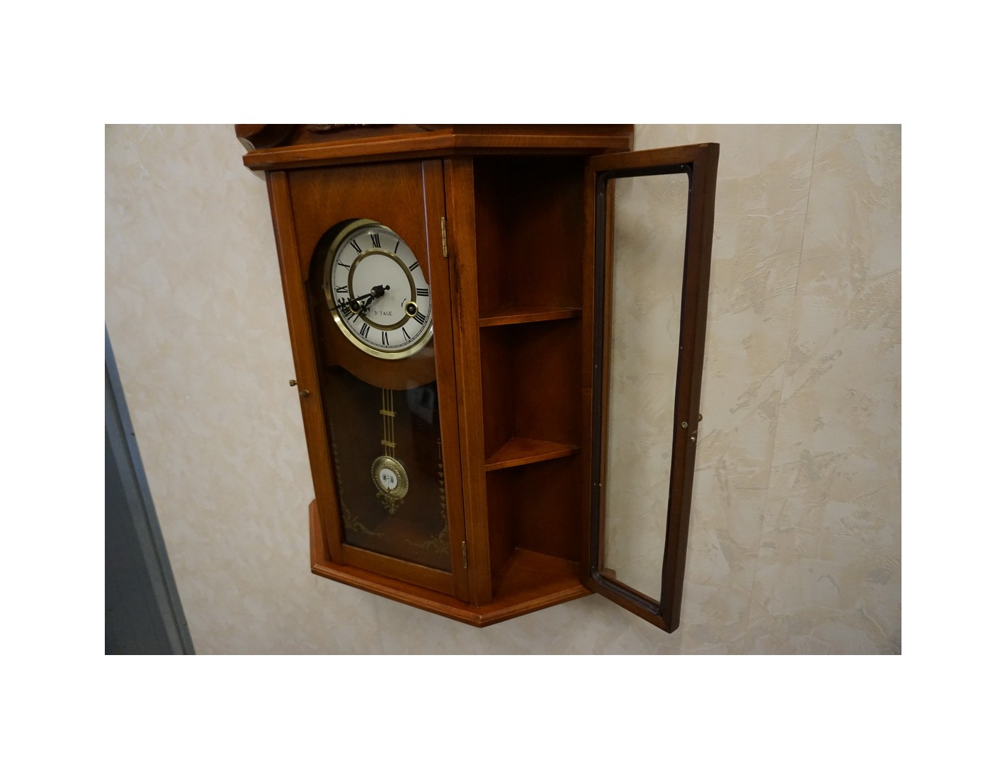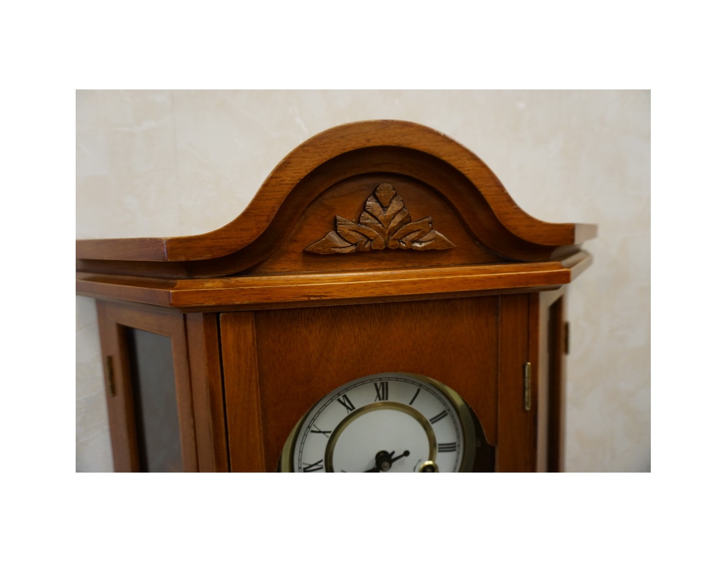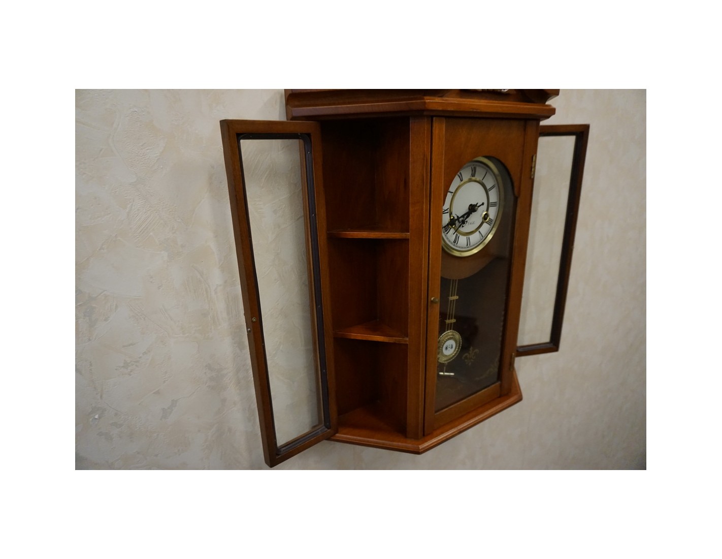 Stylowy zegar ścienny w wybarwieniu orzechowym, który łączy funkcję dekoracyjną i praktyczną. Dzięki przemyślanej konstrukcji, zegar posiada 2 boczne drzwiczki z półeczkami, które mogą posłużyć do przechowywania drobnych przedmiotów lub dekoracji. Idealnie sprawdzi się zarówno w klasycznych, jak i rustykalnych wnętrzach.
