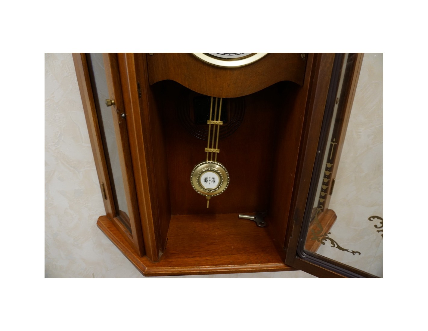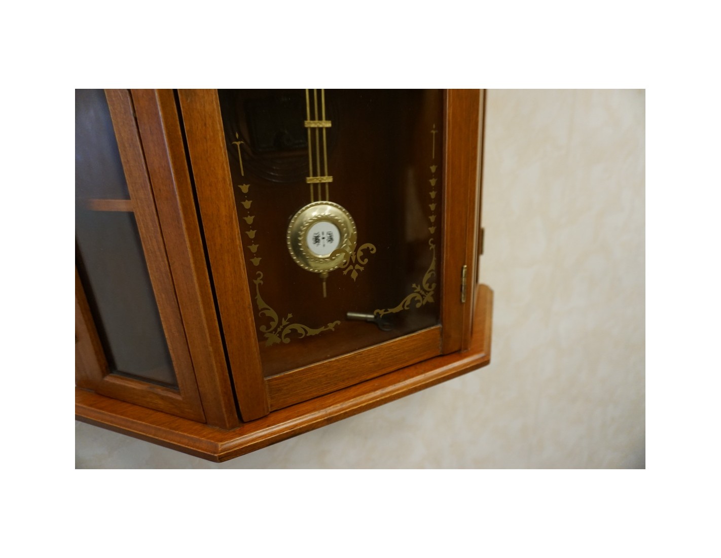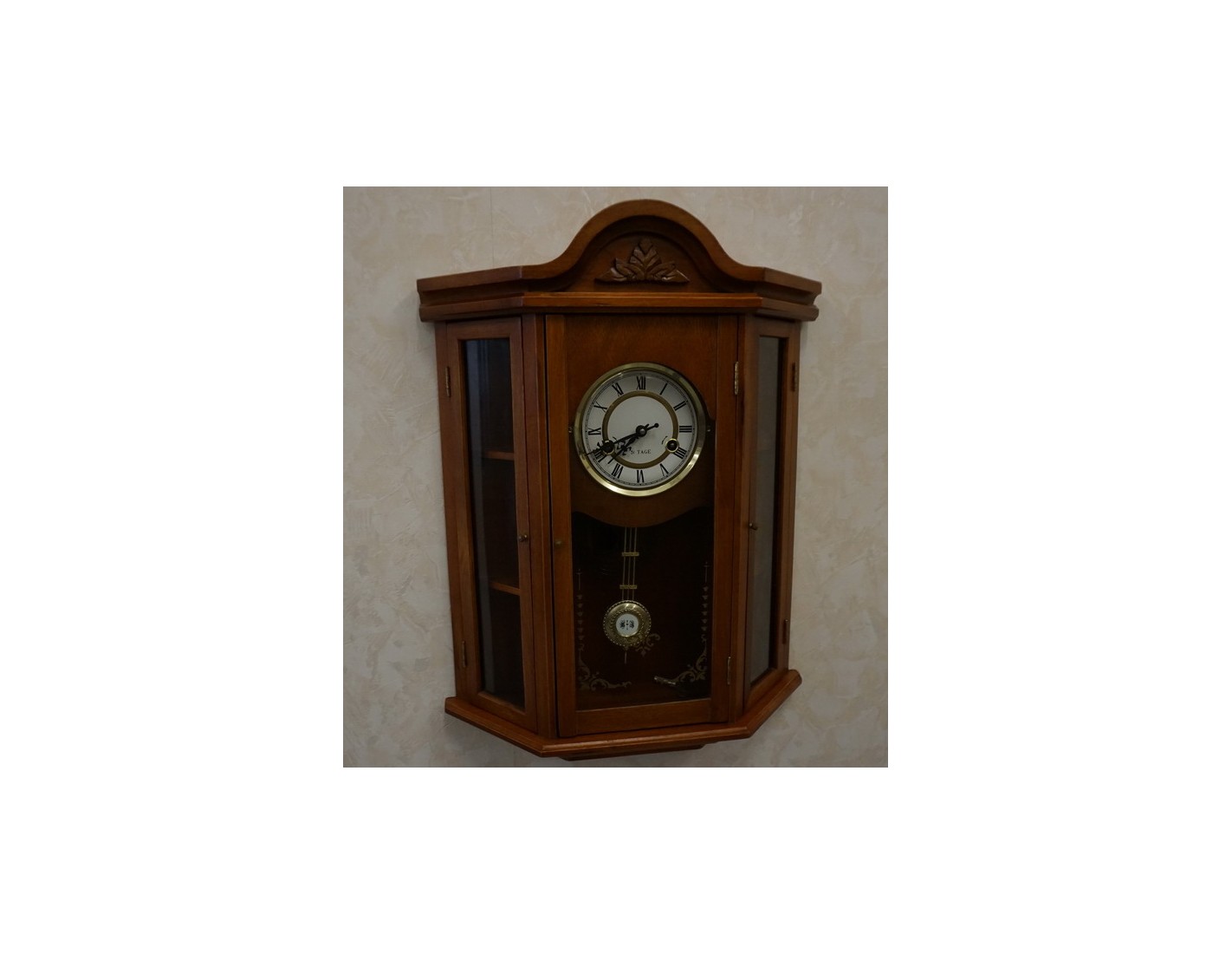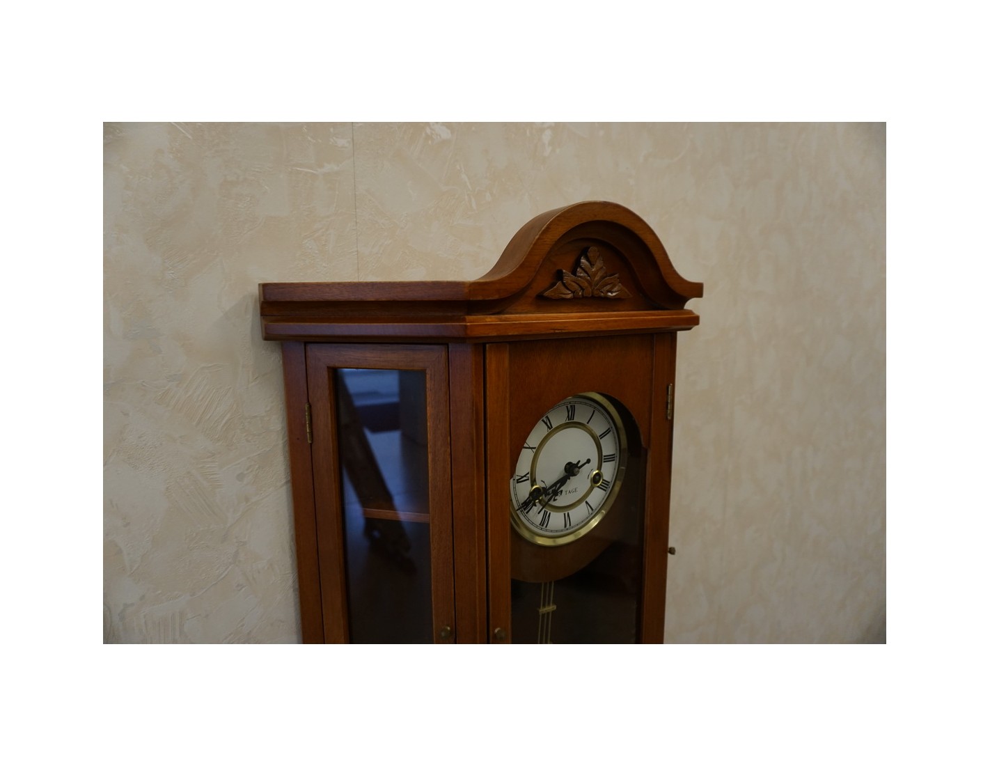 Stylowy zegar ścienny w wybarwieniu orzechowym, który łączy funkcję dekoracyjną i praktyczną. Dzięki przemyślanej konstrukcji, zegar posiada 2 boczne drzwiczki z półeczkami, które mogą posłużyć do przechowywania drobnych przedmiotów lub dekoracji. Idealnie sprawdzi się zarówno w klasycznych, jak i rustykalnych wnętrzach.