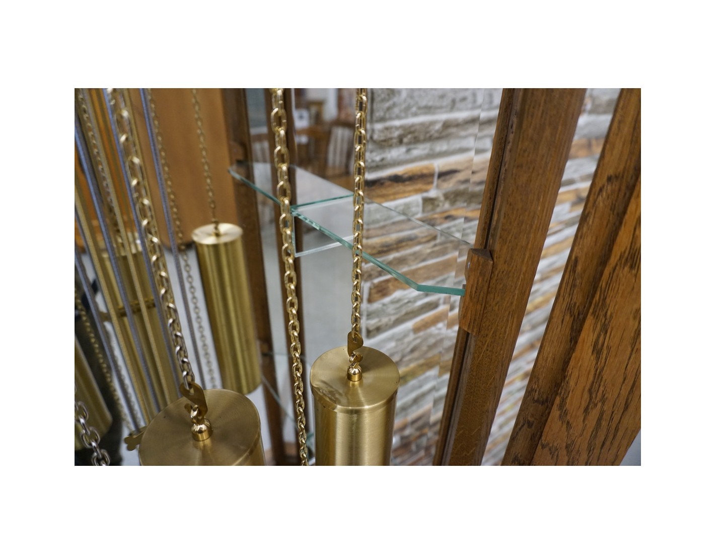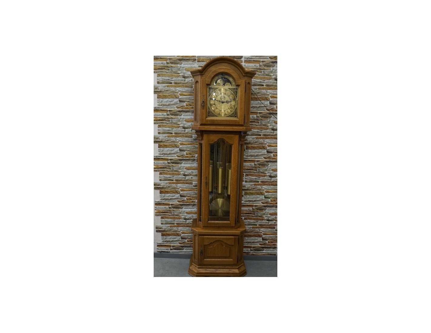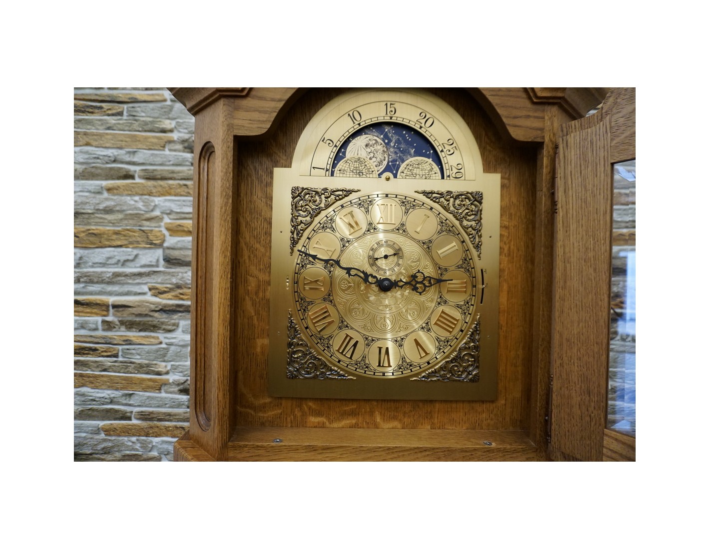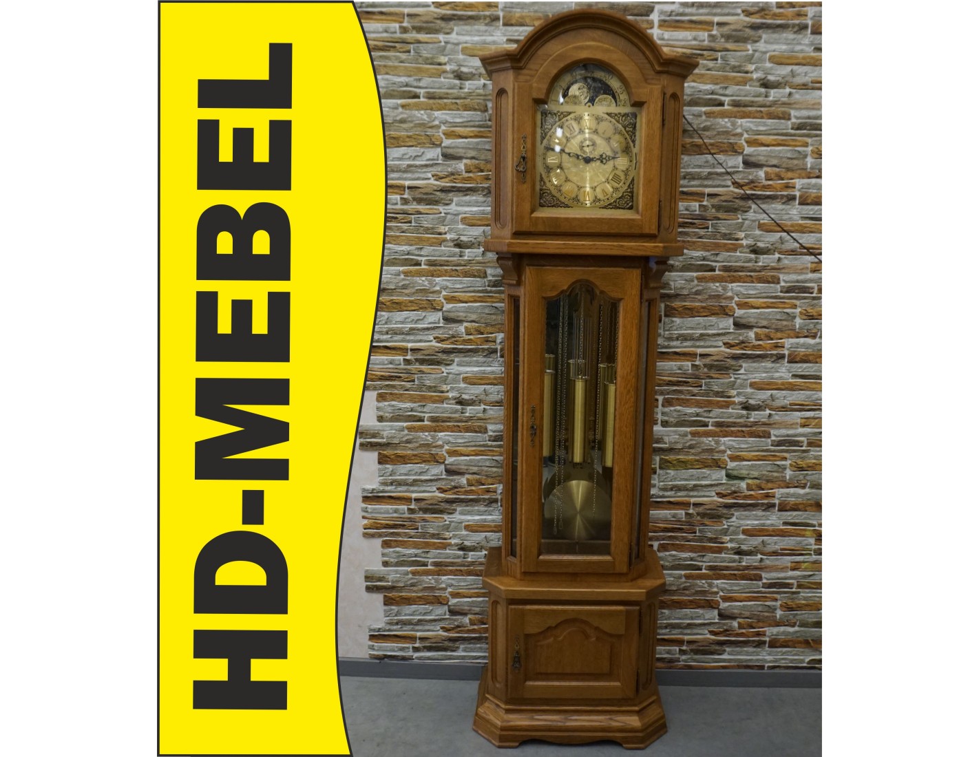 Elegancki zegar stojący wykonany z dębu to wyjątkowy element wystroju wnętrza, który łączy klasykę z ponadczasową solidnością. Jego dostojna forma i naturalne usłojenie drewna nadają mu wyjątkowego charakteru, sprawiając, że doskonale prezentuje się w salonie, gabinecie lub holu.