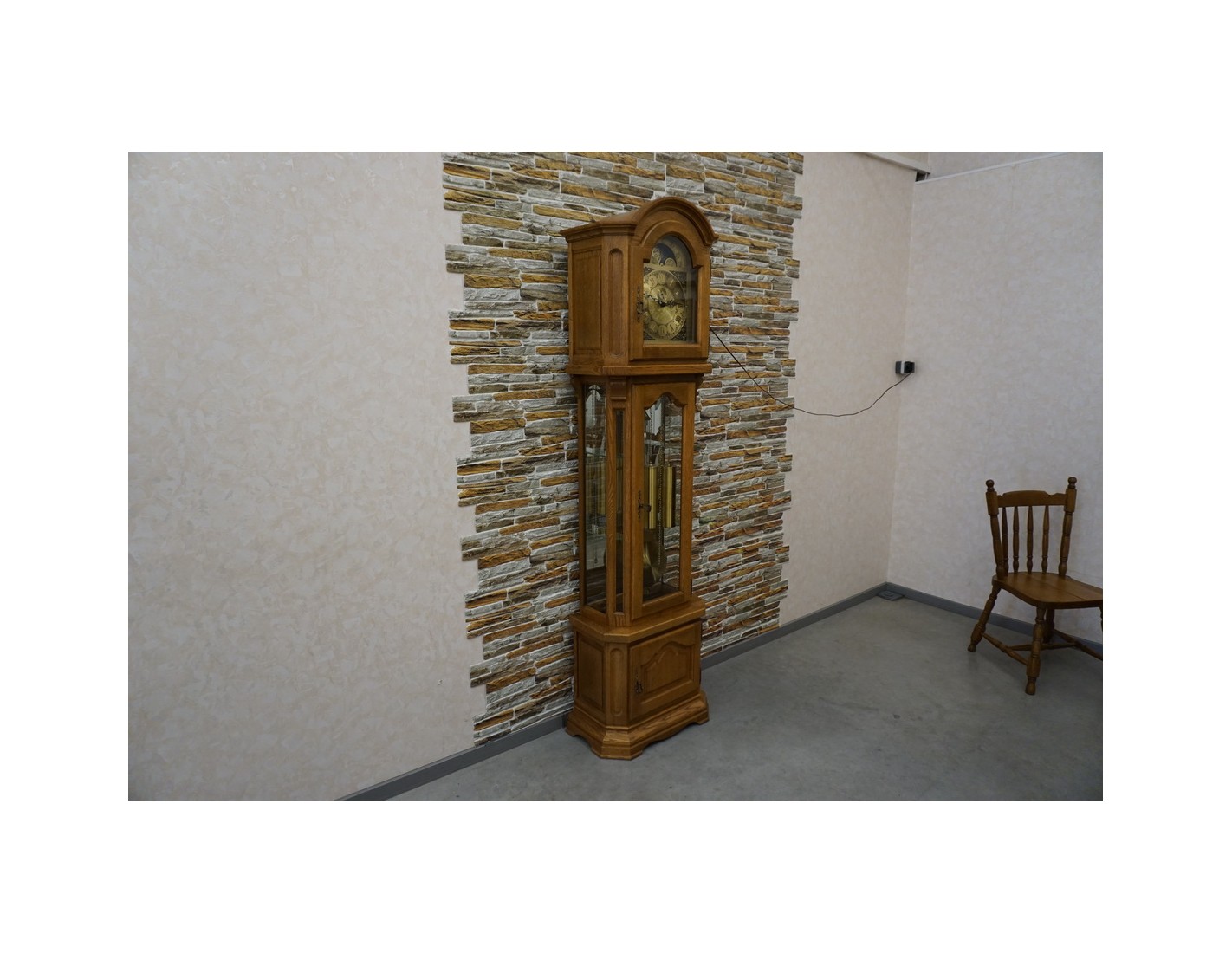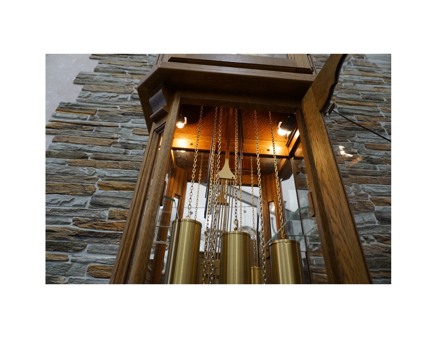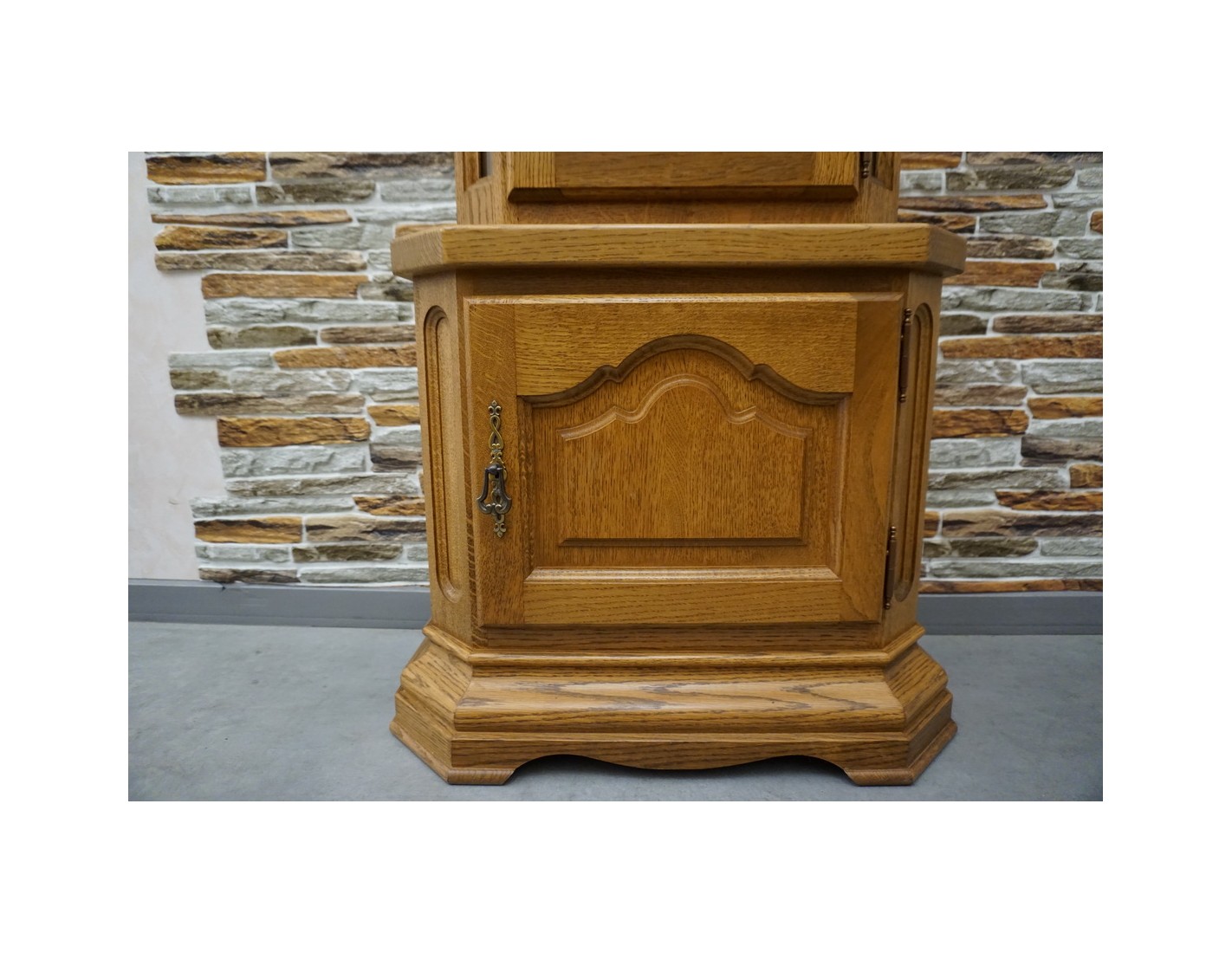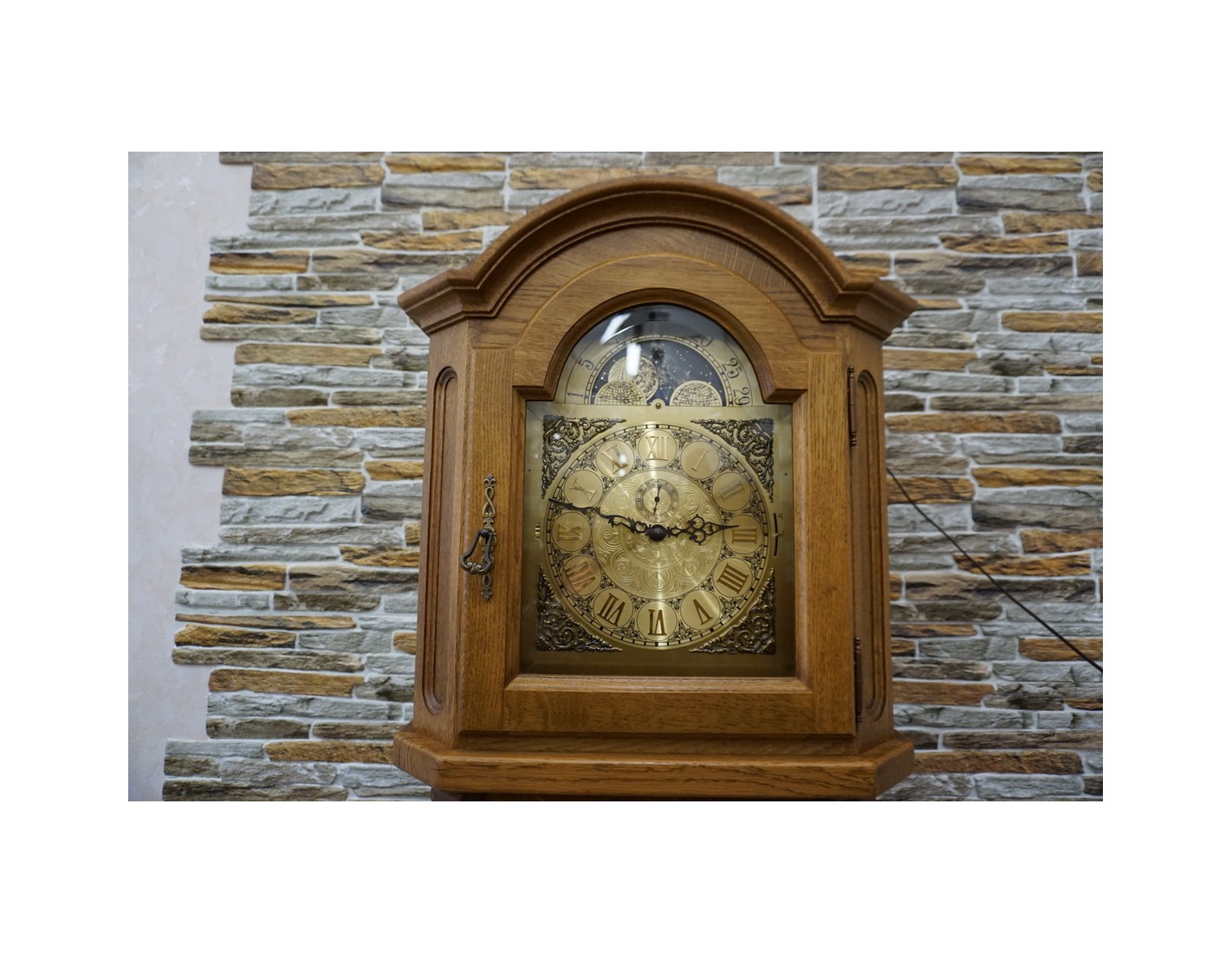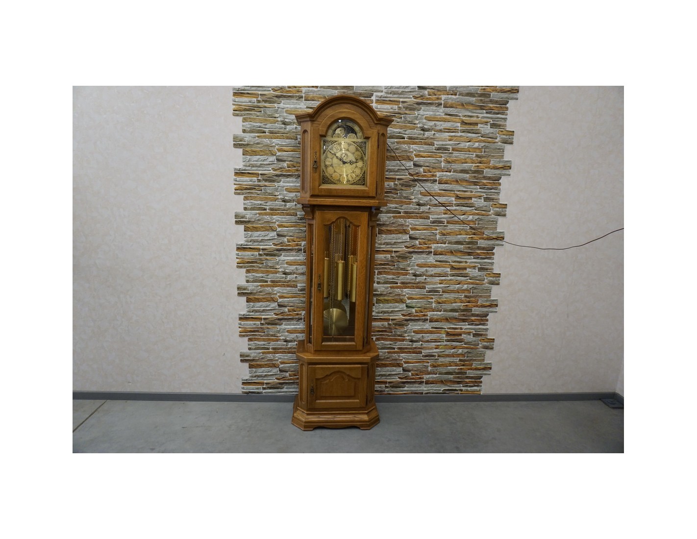 Elegancki zegar stojący wykonany z dębu to wyjątkowy element wystroju wnętrza, który łączy klasykę z ponadczasową solidnością. Jego dostojna forma i naturalne usłojenie drewna nadają mu wyjątkowego charakteru, sprawiając, że doskonale prezentuje się w salonie, gabinecie lub holu.