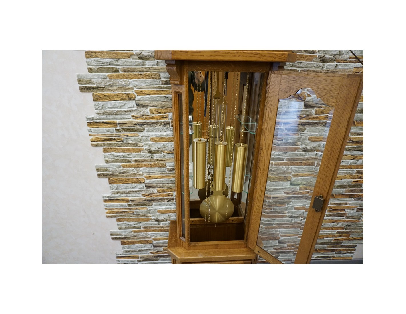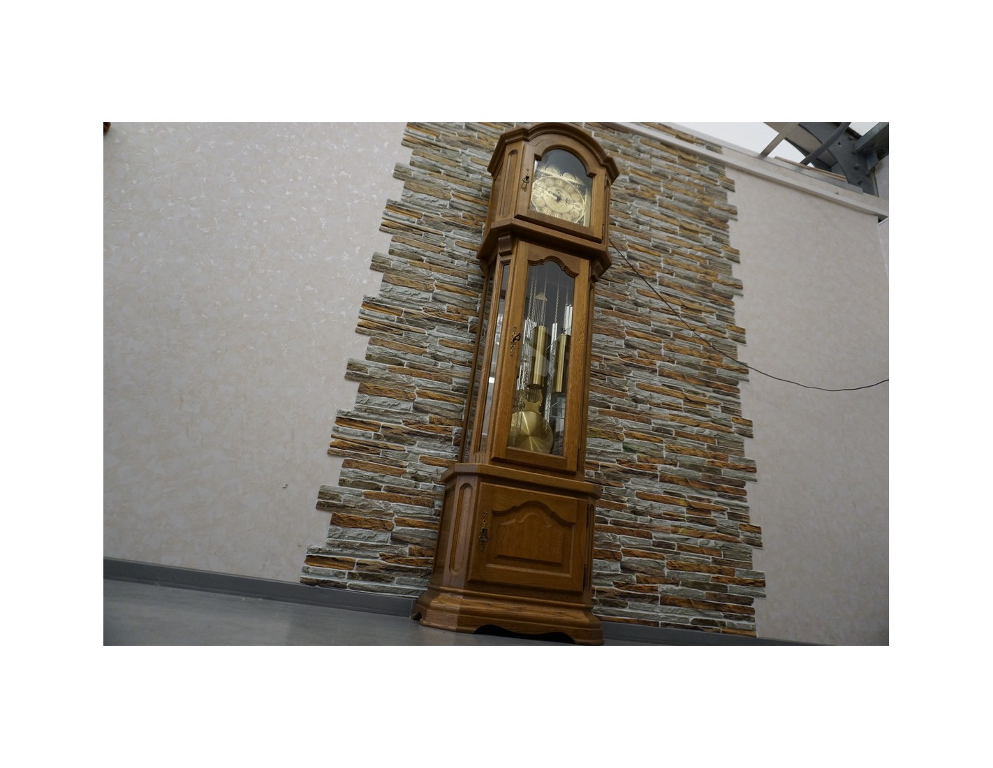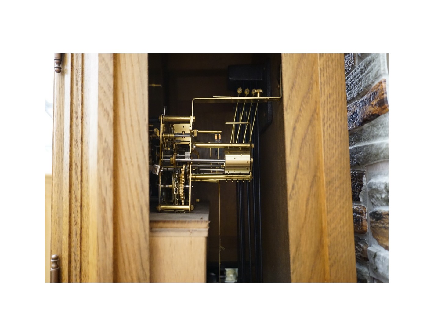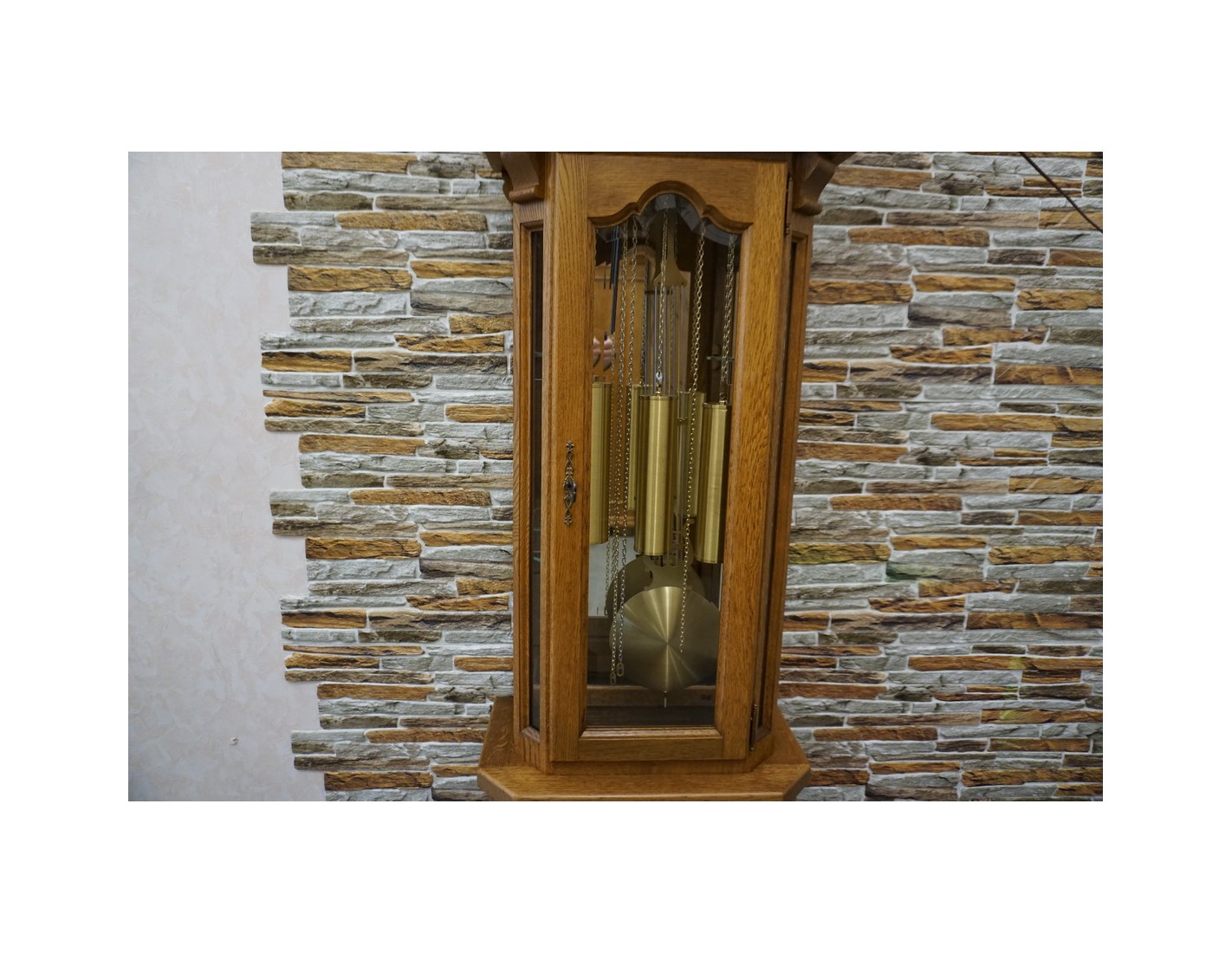 Elegancki zegar stojący wykonany z dębu to wyjątkowy element wystroju wnętrza, który łączy klasykę z ponadczasową solidnością. Jego dostojna forma i naturalne usłojenie drewna nadają mu wyjątkowego charakteru, sprawiając, że doskonale prezentuje się w salonie, gabinecie lub holu.
